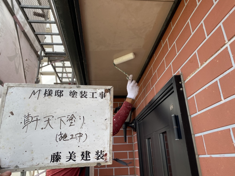 次に軒天の下塗りをします。