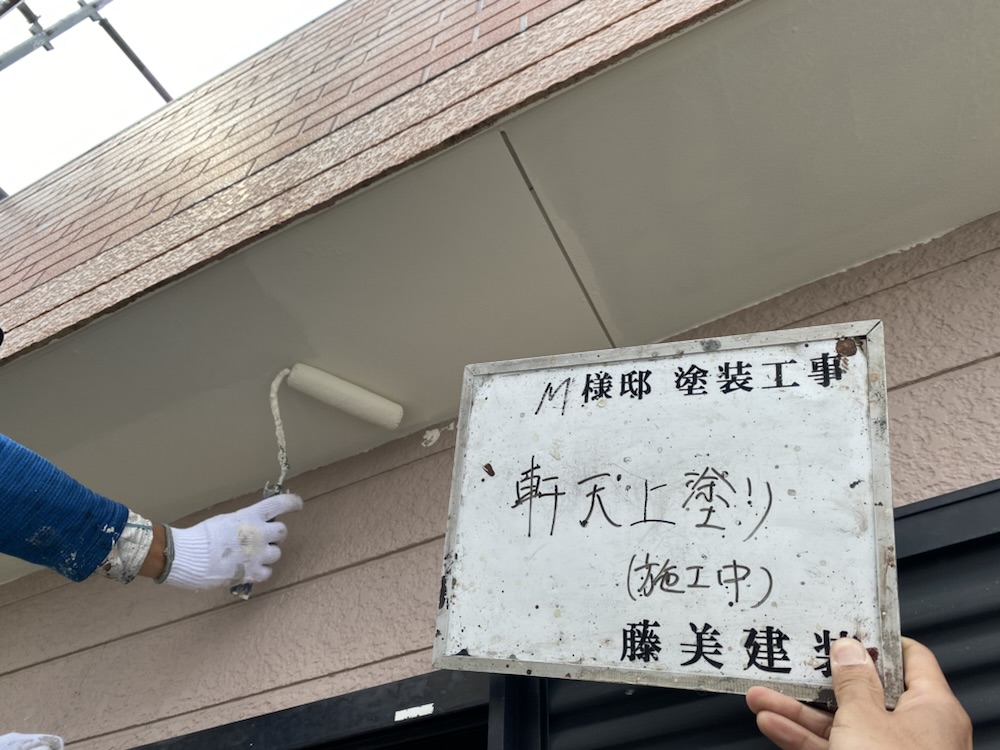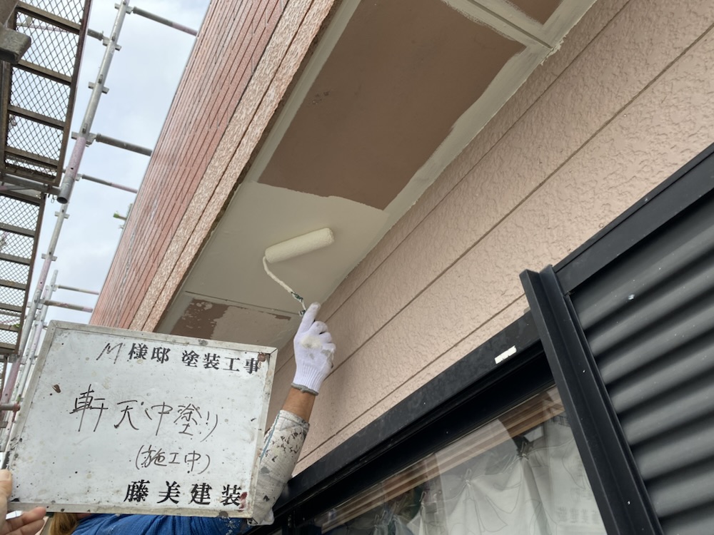 次に中塗り・上塗りをして軒天は施工完了です。